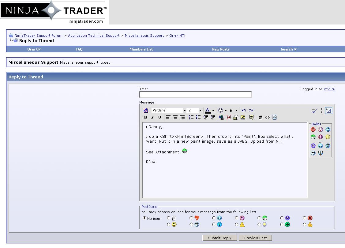 Since there is no function to save a picture of the alerts window, I selected send email to myself. The Sending mail box says the request cannot be aborted. It doesn't go away. I received my email ok and still the box persists. Since it does not go away and cannot be aborted my NT has effectively frozen me out. Charts update but I can't access a single thing, including the ability to shut it down! This ticks me off!Tags: None