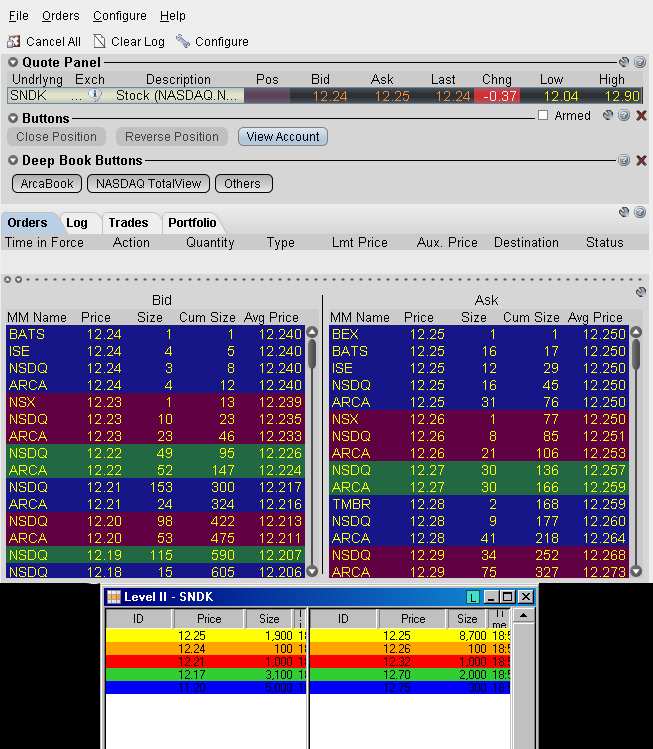 ninja only shows a tiny part of the L2 data, often has a crosed market or negative spread, which are not on IB TWS L2 screen, it also clumps price and gives no ID.