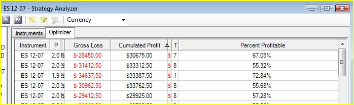 To be more explicit, I'm trying to change the column width by clicking on the boundary between two column labels, and then dragging that boundary to stretch the column to get a larger (or smaller) size. While doing this the pointer is displayed as a double-headed, horizontal arrow. This is what I claim is broken in the StrategyAnalyzer... but only on the screens where there are a lot of columns. For instance, it seems to work OK on the "Summary" screen, but not on the "Trades" screen. However, after clicking on the boundary, when I start to drag it to make the width smaller/larger, the double-headed, horizontal arrow turns back into an oridinary arrow, and the amount that I drag, seems to have little relation to how much resizing is done (I can drag it two inches but only see 1/4 inch of change in width.)