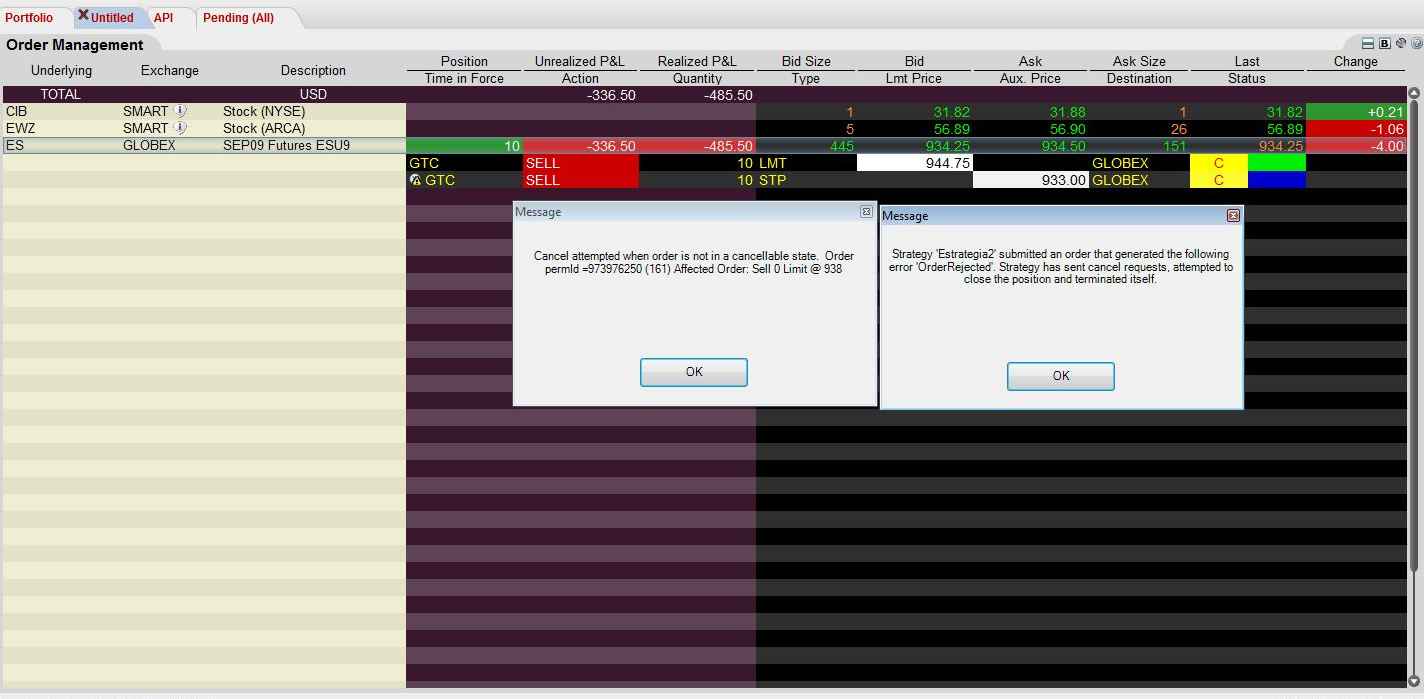 Hi. When I place a profit target order and a stop loss order throught setstoploss and setprofittarget, and my stop loss is filled, I see the following error. Can you tell me what is going on?