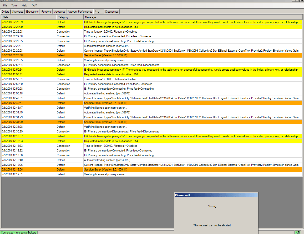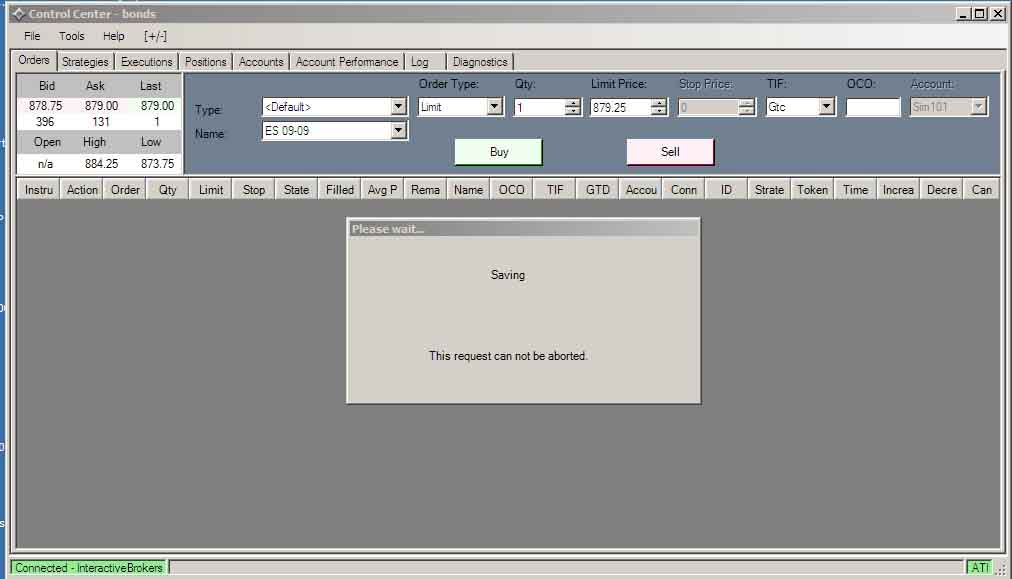 IB - "Saving" never completes