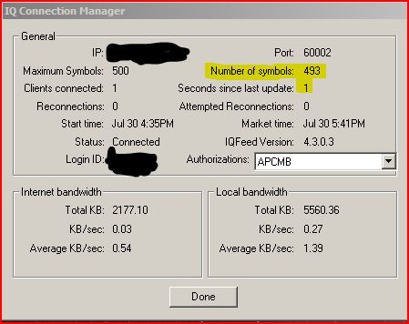 We are both using the latest IQConnect. I have an 8MB pipe to the internet and so does he. We both have dual core and 2GB memory. Under Task Manager, NT uses 5 to 29% CPU and IQConnect uses 0 to 1% CPU. Nothing else running on the computer and the total memory usage is only 1GB.