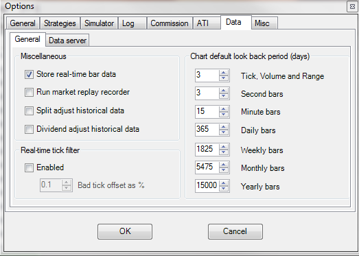 Originally posted by NinjaTrader_Ray View PostPlease ensure you don't have the real-time tick filtering enabled via Tools > Options > Data.