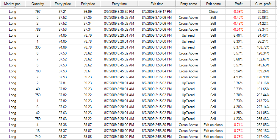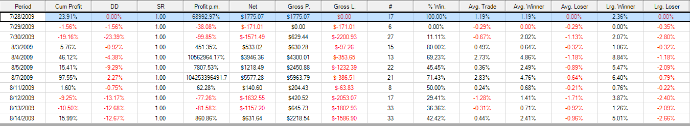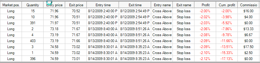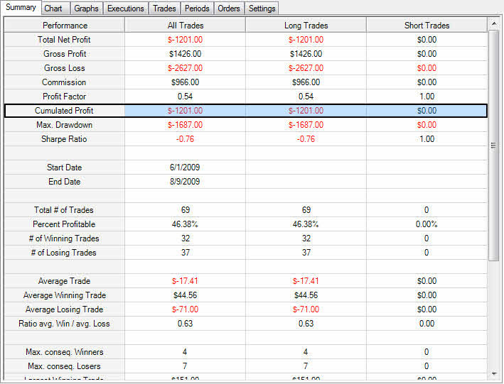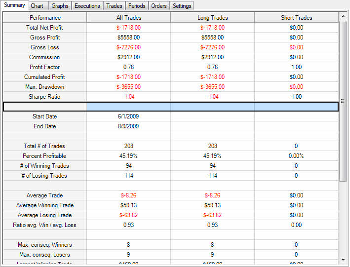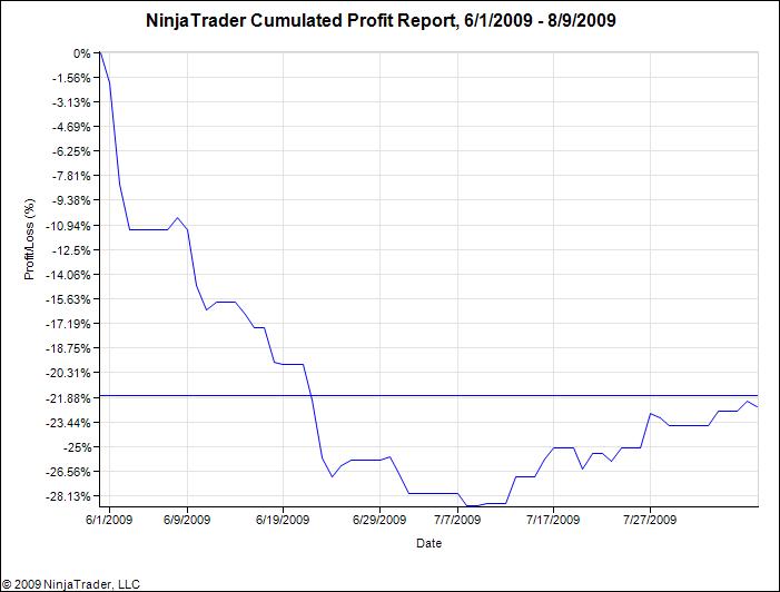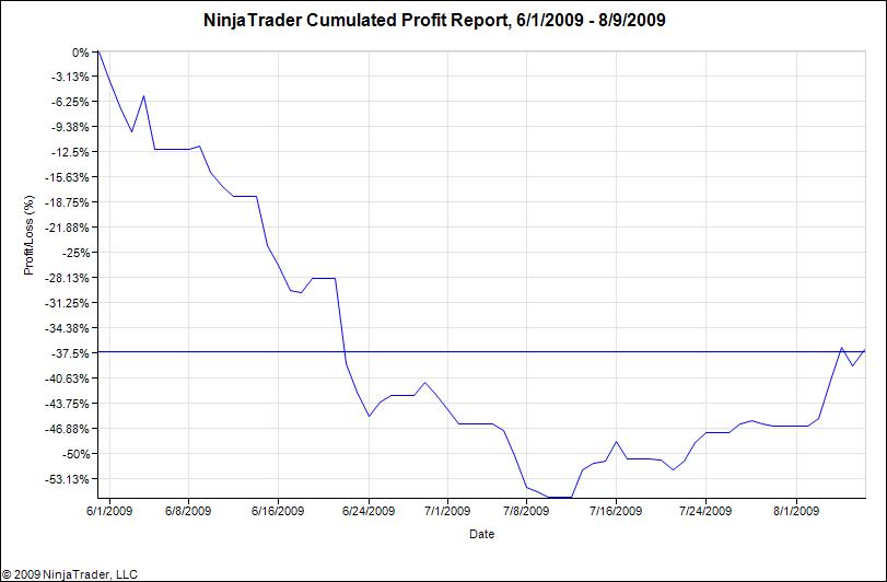 I am using the Divergence pattern that isitpossible put on the strategies section of the NT forum. I am running FAS a triple barreled bull financial ETF. I am running a .015 stop loss pct and a .01 trailing stop pct on 100 shares. I am starting it at 930am to 4pm. The test is starting at 6/1/2009 to 8/10/2009 Let me know if you need anything else.