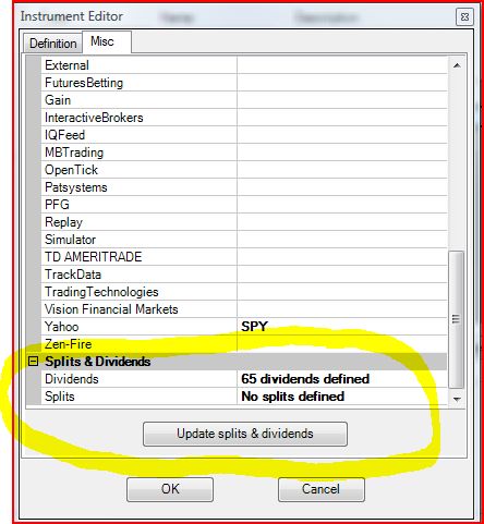 Yes, I've updated the dividends/splits using the procedure in the help section. Yahoo has both adjusted and unadjusted data in their database. In addition, the data that NT is importing does not even equal the non-adjusted historical data in Yahoo, it is somewhere in between. However, I reviewed all of the dividends and splits NT has listed for SPY and they are accurate and equal to those dividends listed in Yahoo.