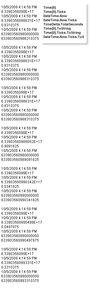 I was playing around with the various time formats after I heard that the TickTime and TickTimePlot might be inaccurate. After going over it, I can see how that might be the case to some extent, certainly in the sub-second accuracy.