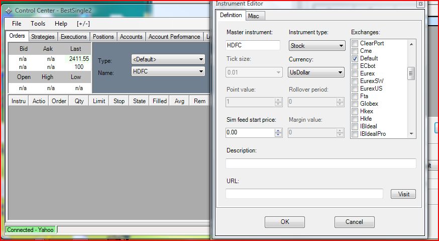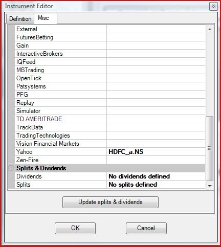 I use eSignal for US related stocks, and adding new instruments has not been an issue with it. However, now I am trying to add NSE ( National Stock Exchange of India ) stocks from Yahoo and though I have been able to add NIFTY ( ticker : ^NSEI ), I am unable to add other stocks