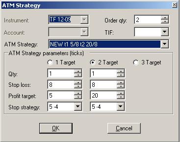 I have an ATM strategy that works on 2 contracts. For example when my plan is to go long when the market is below the price at which I intend to enter the market I simply park my order with ATM strategy at that price ( above current market price ) . However, often, my signal to enter can be on both ends ( I'm trading range bars ) and when I attempt to enter the same ATM below the market price it places the order but only for 1 contract which negates the entire ATM strategy. Any help will be appreciated.