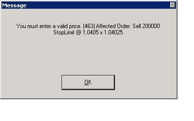 Here is a stop limit order to sell with a stop of 1.05755 and limit of 1.05745. This is a valid stop limit but only in the USDCAD I have problems.