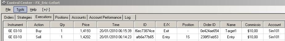 My last trade on my simulation account yielded a $112.50 profit (picture 1) and the previous one a $87.50 loss (picture 3).