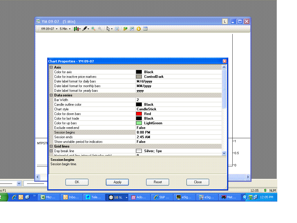 I am located in India which is IST:- GMT + 5.30 hrs. As per IST central time will translate as 8:30 PM to 2:45 AM as trading hours for US stock markets. When i try to put IST in Dow mini charts I am not getting the data on the chart. Attached is the picture. What am I doing wrong.Tags: None