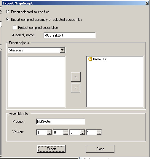 Attached some images...p.s. strategies work fine (compiled and working) but when I try to export....see below