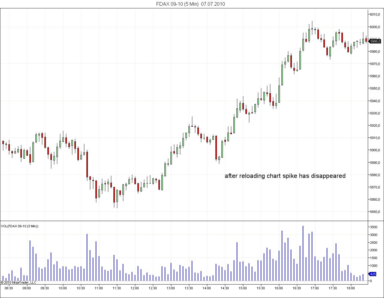 Chart two shows FDAX after reloading all historical data. The spike has disappeared.