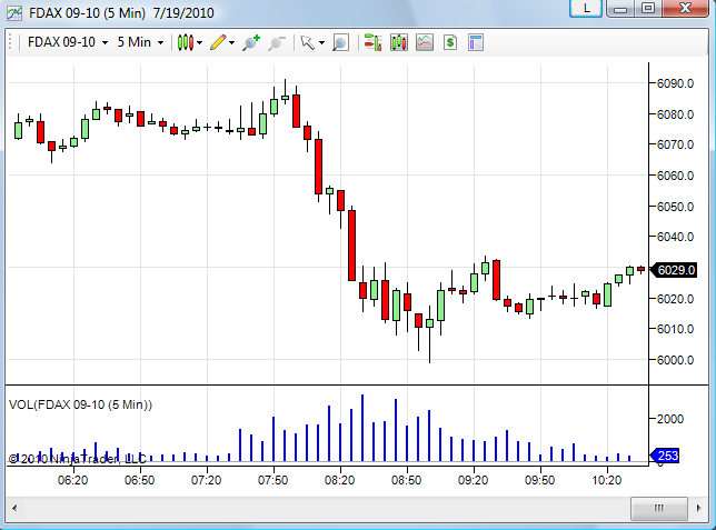 4. Come back 30 minutes later, open 1min FDAX 09-10 chart with no chart template