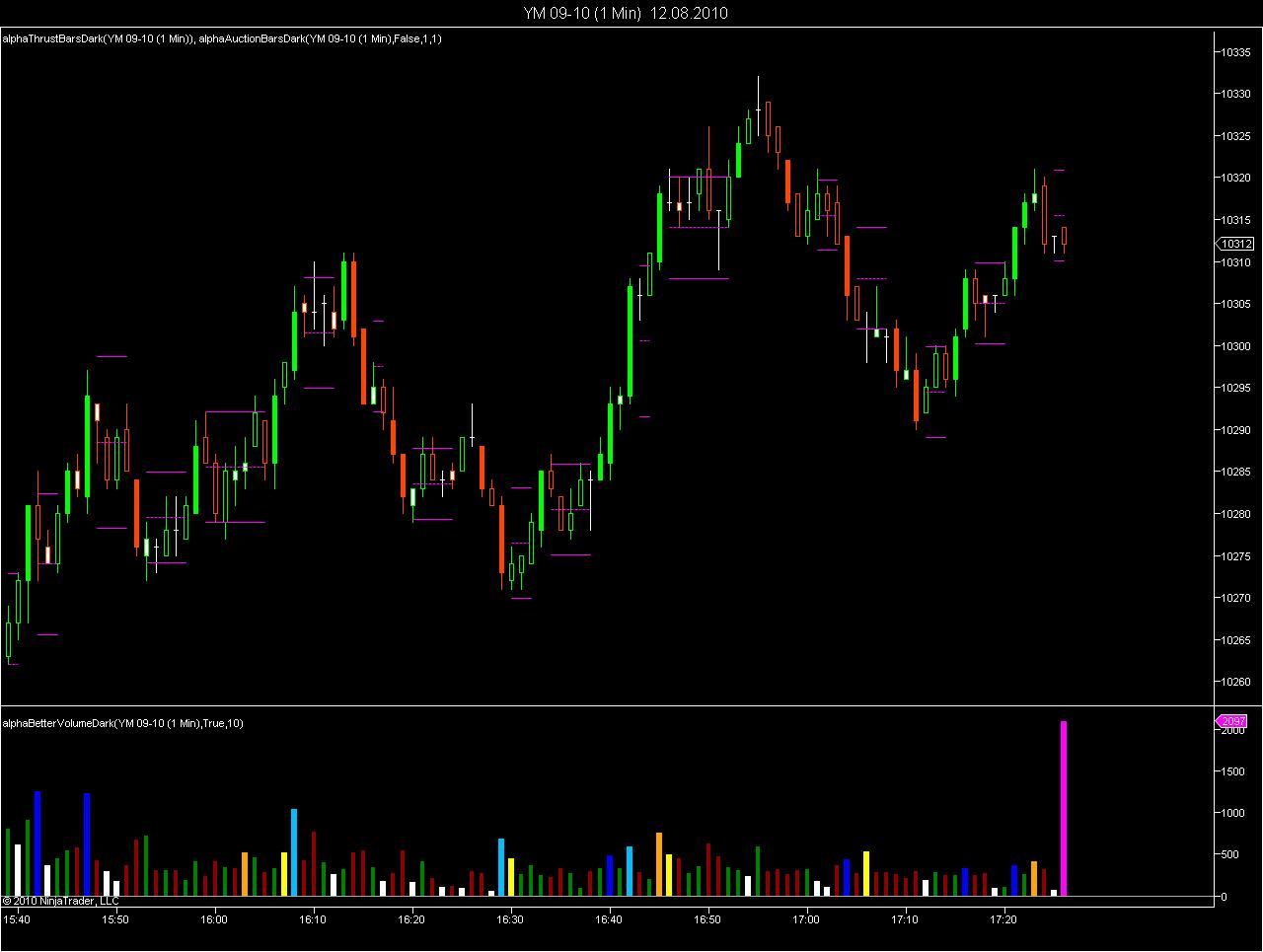 (5) the volume that appears is the same on a 30 min or on a 1 min chart, so it easiest to identify on a 1 min chart. So please use 1 min charts to reproduce.