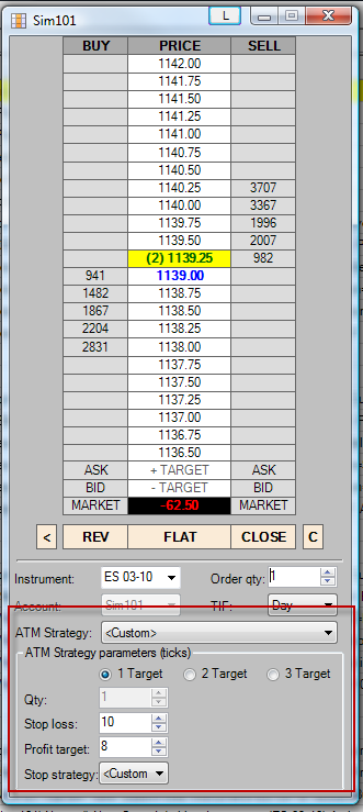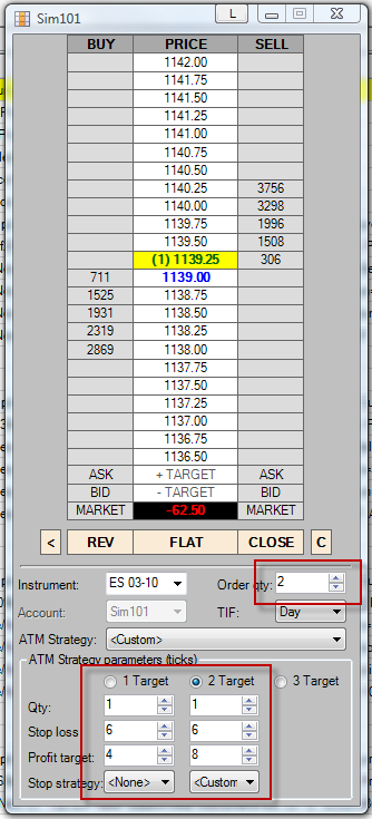 For your first ATM, you must specify a Stop Loss on each target. For this example, I'll assume 6 ticks.