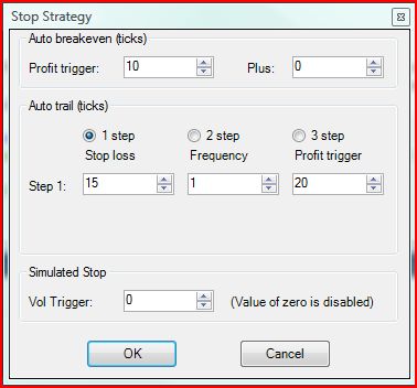 First when profit is 10 ticks, it is Breakeven, this part is easy to do by putting 10 in "Profit trigger".