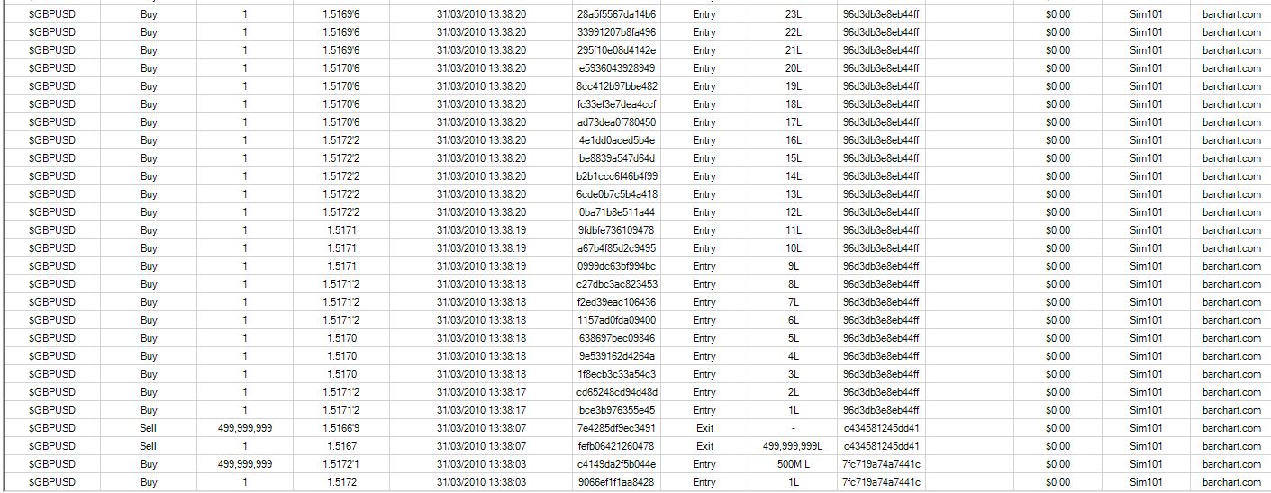 I am connected to BarChart.com using the sim101 account.