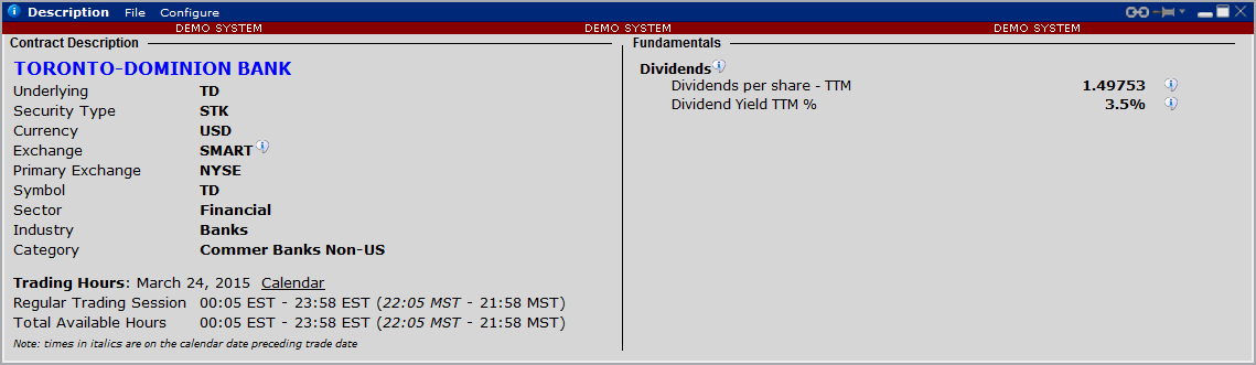 For example the TD is a stock on the NYSE and can be mapped in NinjaTrader.