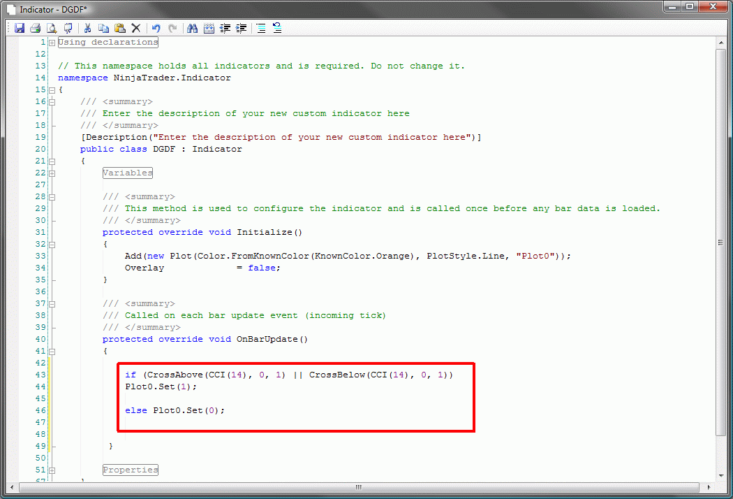 if (CrossAbove(CCI(14), 0, 1) || CrossBelow(CCI(14), 0, 1)) Plot0.Set(1); else Plot0.Set(0);