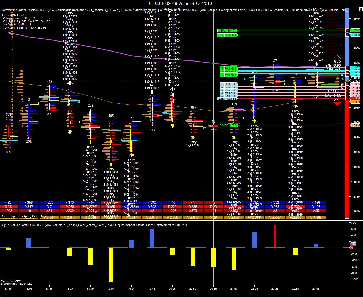 So last night I decided to short the weak rally in 6E and put 37,500 contracts into the chart trader.