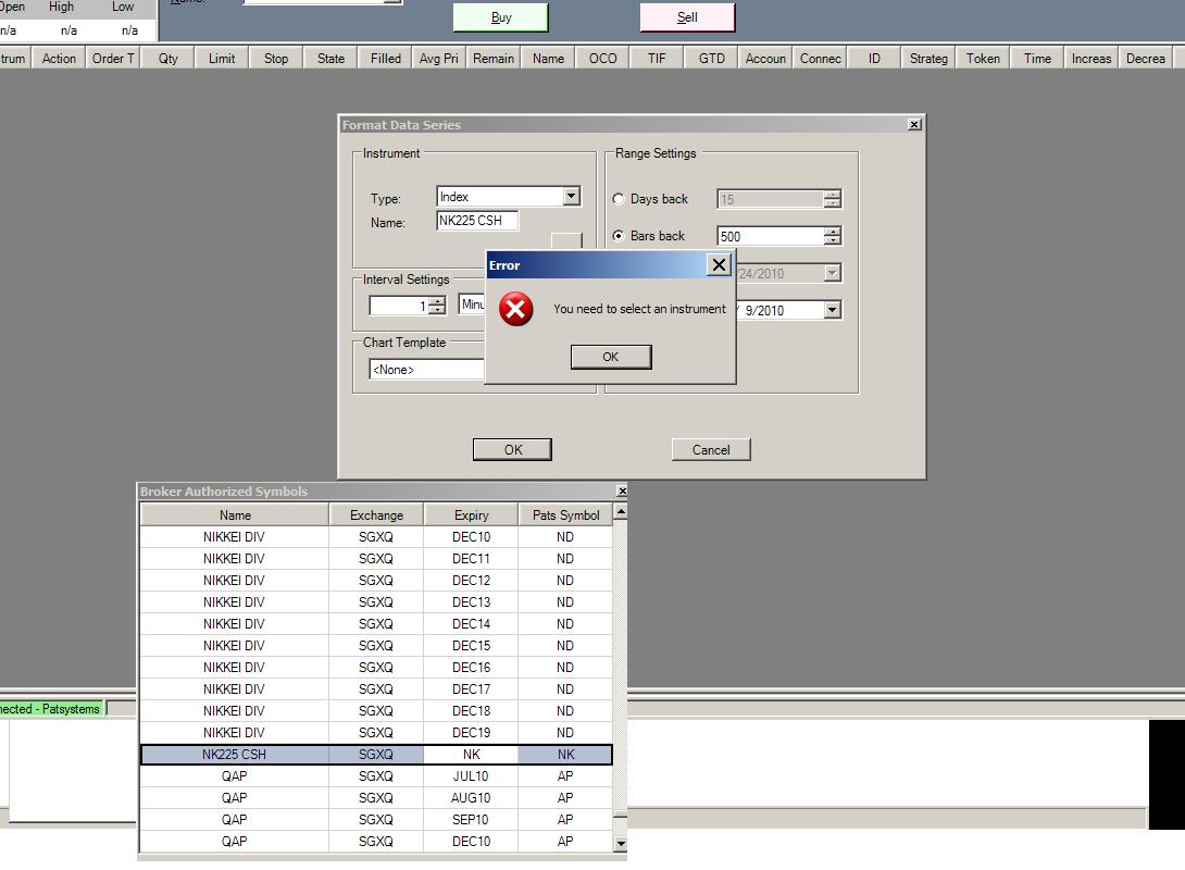 I get this error (attached screenshot) when I try to pull up a chart for a cash index that is available on my PATS server.