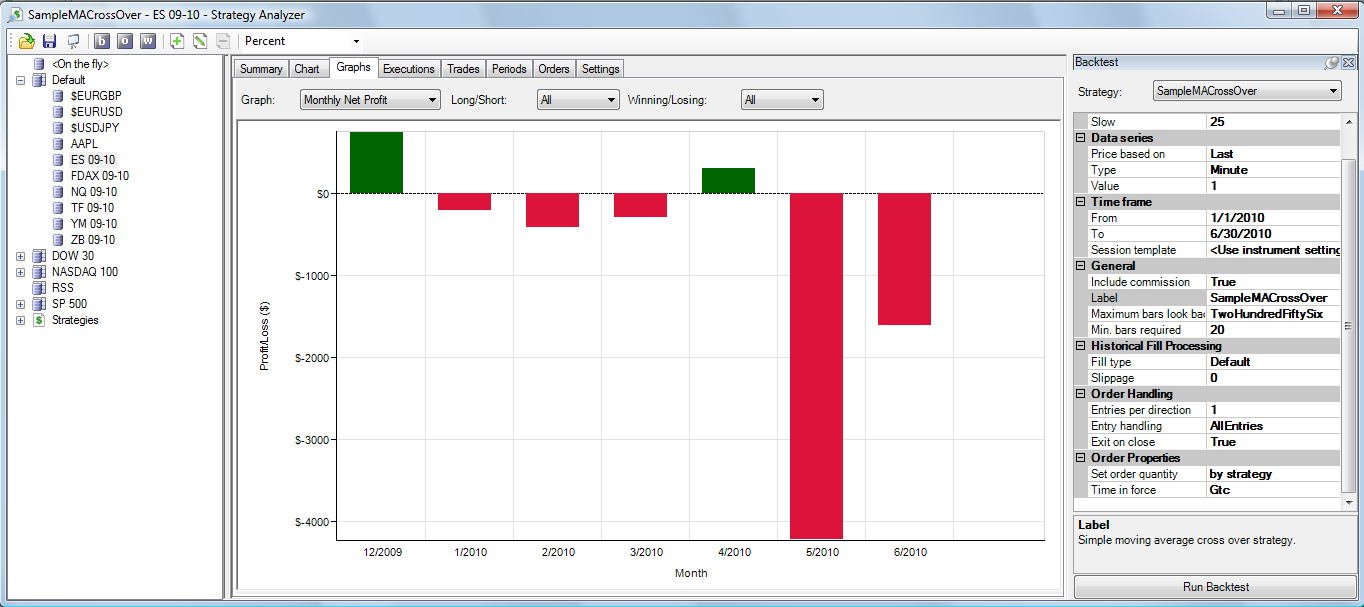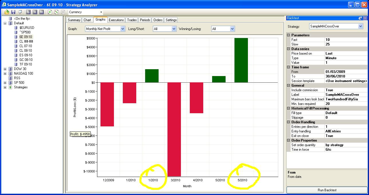 Unfortunately I cannot reproduce. I ensure I had no data earlier than 1/1/2010 in my Historical Data Manager, then ran a backtest from 2009 to yesterday. The results were the same as my prior screenshot. Can you please clarify how your exact setup is? Thank you.Josh P.NinjaTrader Customer Service