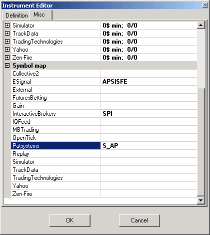 However, after entering some orders with the Patsystems software, NinjaTrader picks those up from the account and creates a new instrument called S_AP. It is possible to execute orders from NinjaTrader using this newly created instrument.