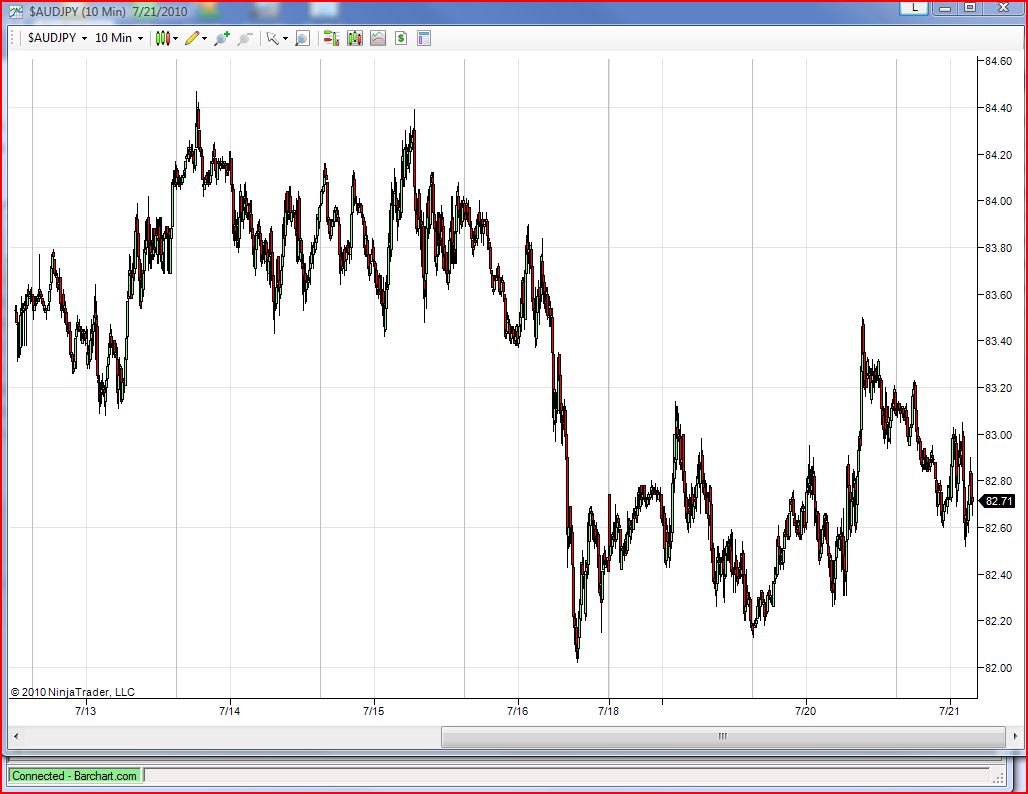 1. There is no setting in NinjaTrader that will cause data to be plotted differently. I am not aware of a known issue. I tested the AUDJPY on my end while connected to BarChart. It lists prices around 80 since 7/19/2010. Data before this date is plotted around 75, see screenshot. Could it be the data in the other applications display data before 7/19/2010?