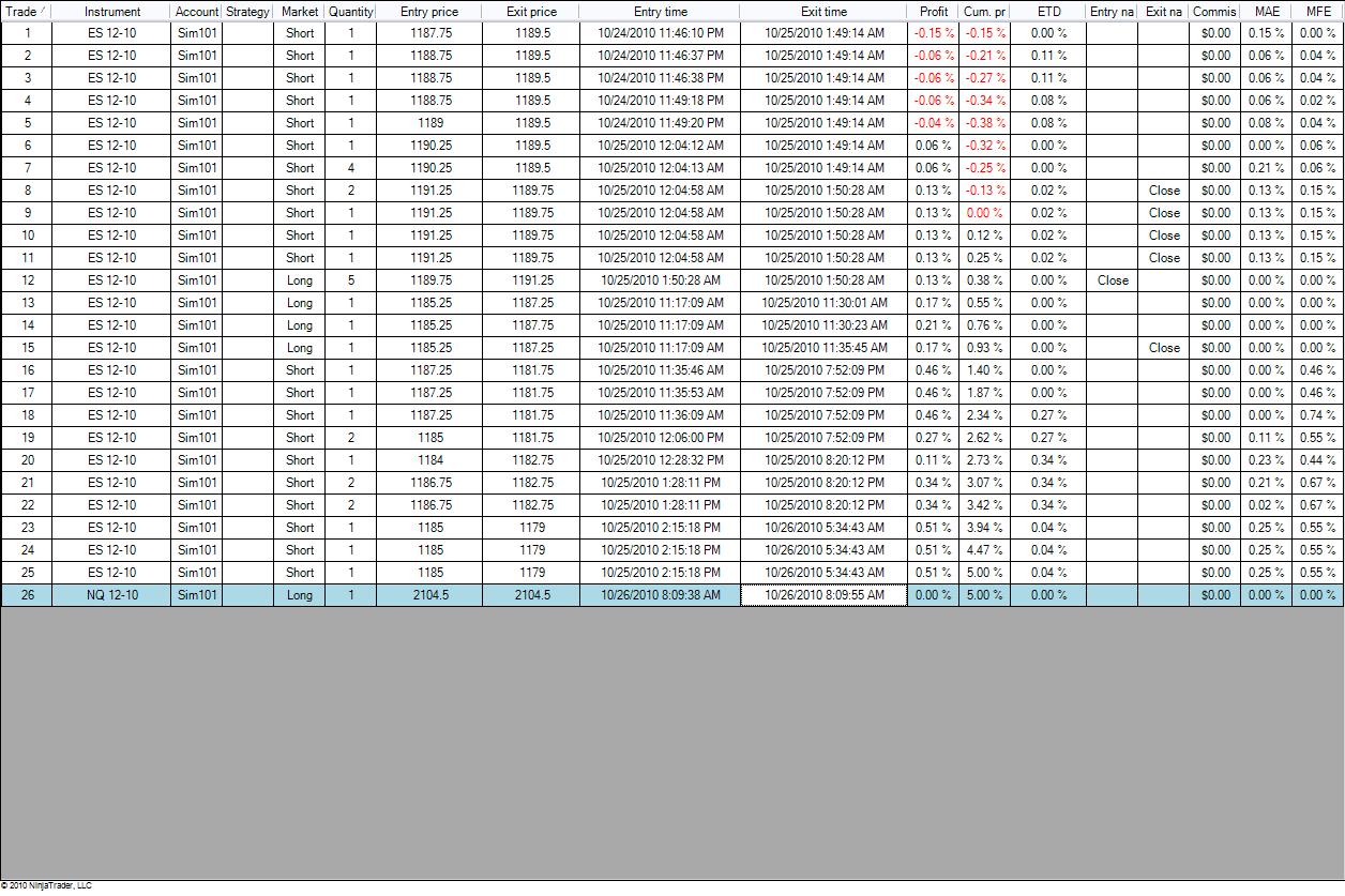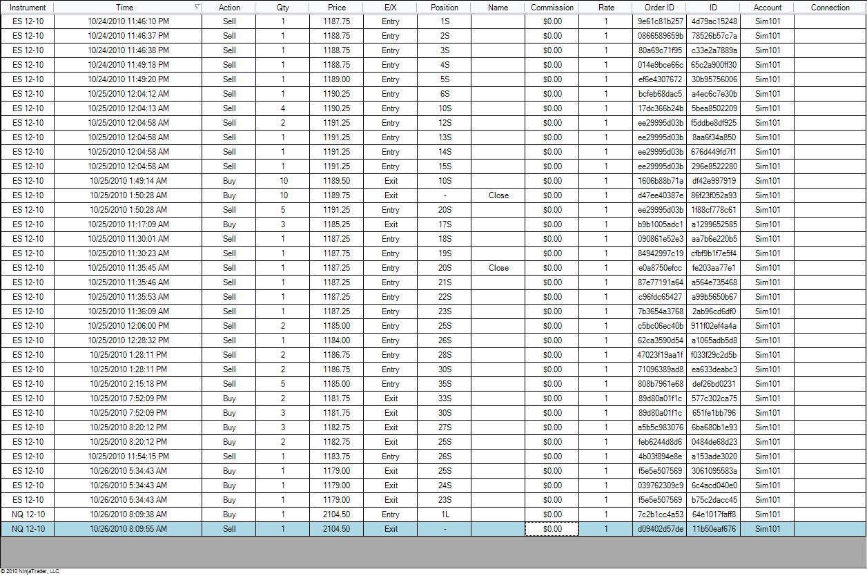 I'm running a "simulated" trading strategy performance test using the Sim101 account, to get an idea of how my trading strategy "might" run in real-time. When i do this, in the "accounts performance" section (tab) can I add "broker commissions" so as then i can look at ALL my trade profits and losses AFTER subtracting $10 broker commission per round turn??