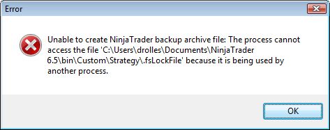 This indicates that another program was using a NinjaTrader file. Can you try rebooting your PC and let me know if the error appears again.
