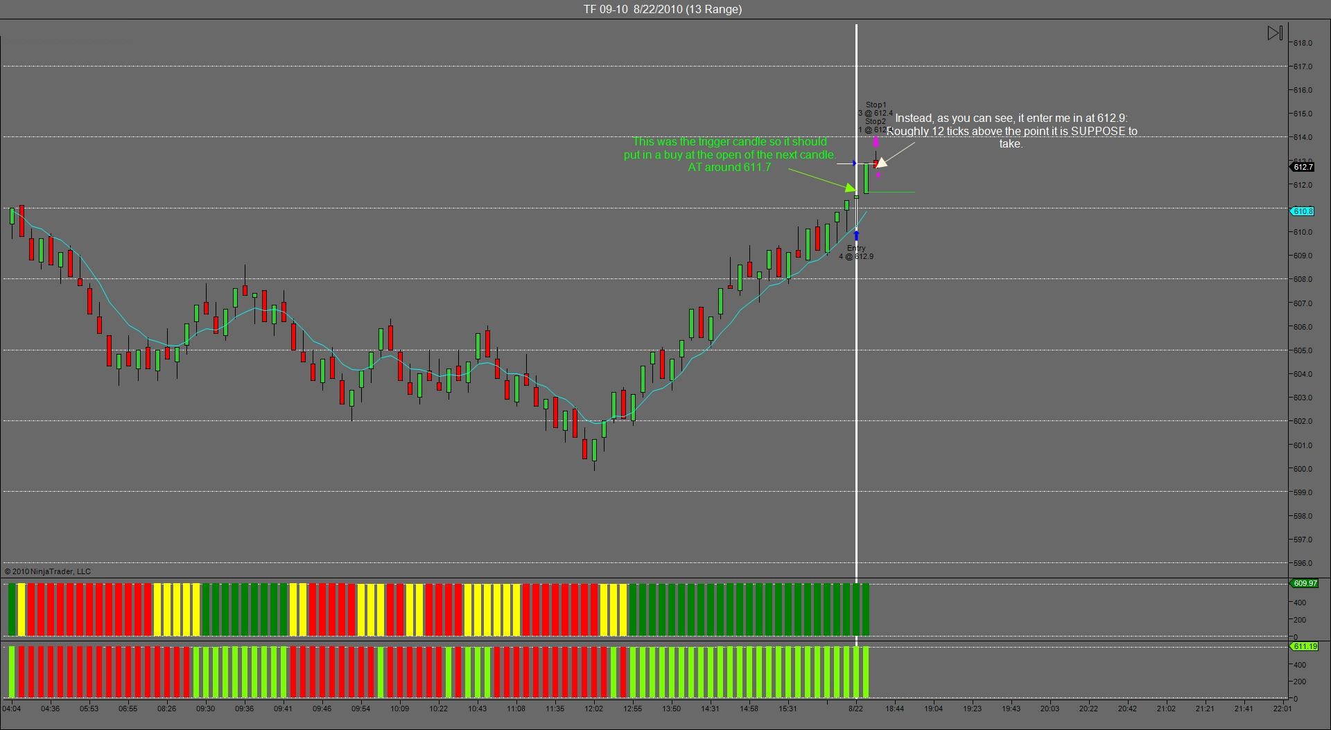 Not only that, the candle I entered is nowhere CLOSE to 612.9. If you look at the attached picture, it did not hit 612.9 until the next candle, roughly 5 minutes after my entry.