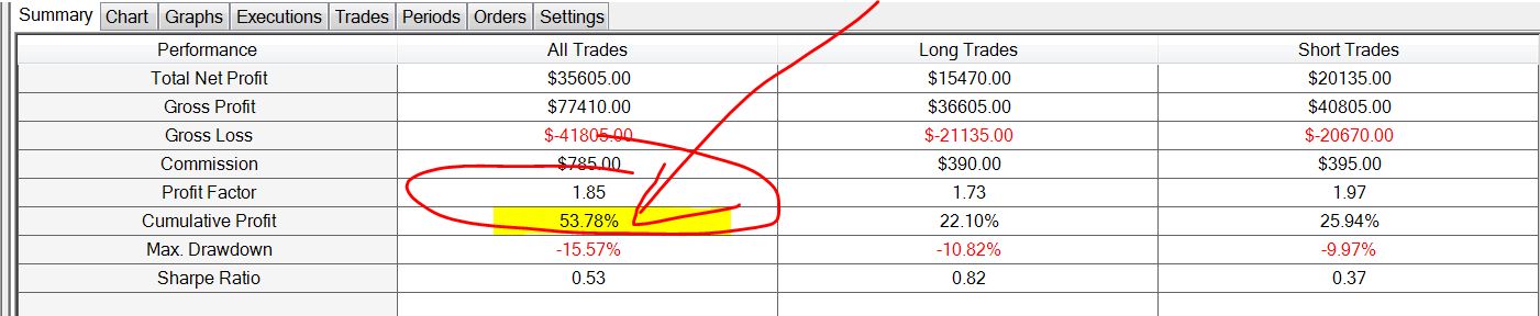 So essentially the divisor of the cumulativeprofit(%) in percent is the sum of all average exit prices?