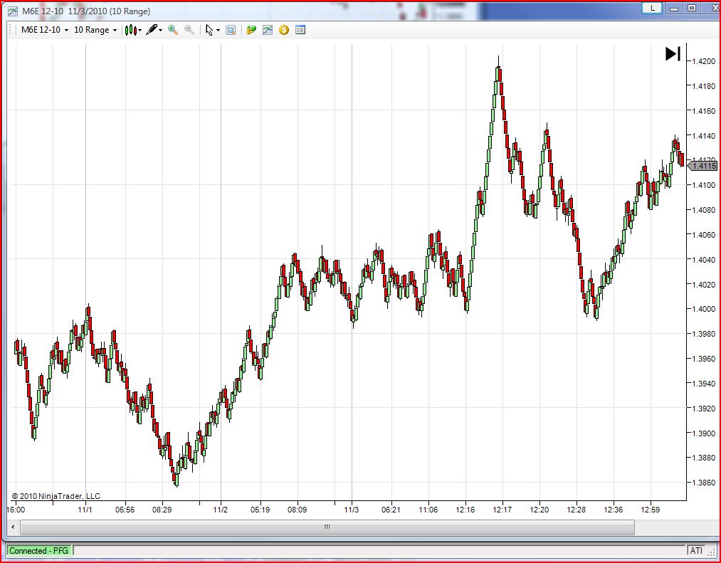 I don't think the problem is missing data from PFG or Zenfire data's servers. If that was the case then time charts would not display candles. The bug is in the range chart, however, without an exact steps to duplicate the problem, it would be hard for the development team to fix it. Hopefully, someone can help on this issue