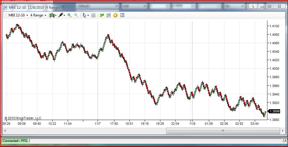 The broker is PFG. Any reason why the data shows up on one chart (the 15min) and not the other (10-range) on a reload?