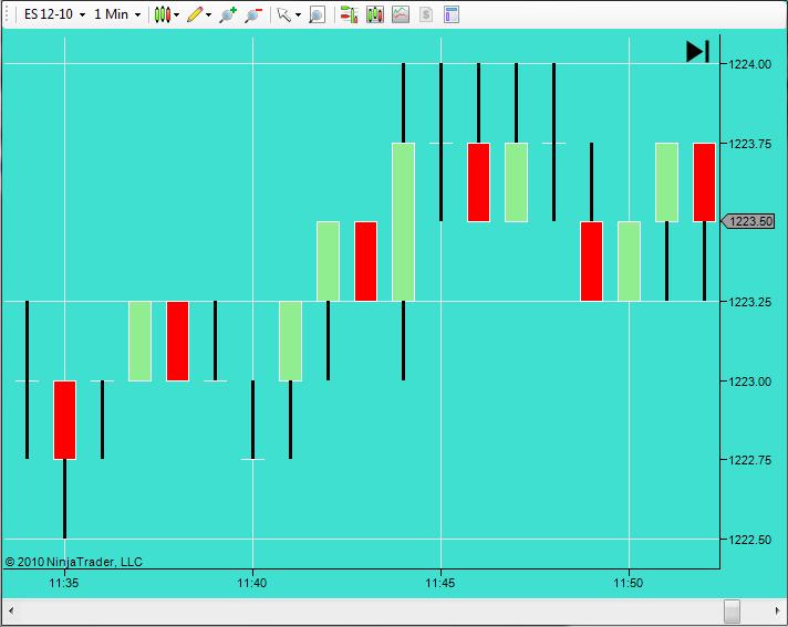 this ur chart blown up. If u set the wht outline thicker then setting 1, you will see the top and bottom wick in front of the outline. If you set it at 1 it looks like the top is behind and the bottom is in front (visual illusion). In my opinion both wicks should be behind the outline of the body. hope this helps