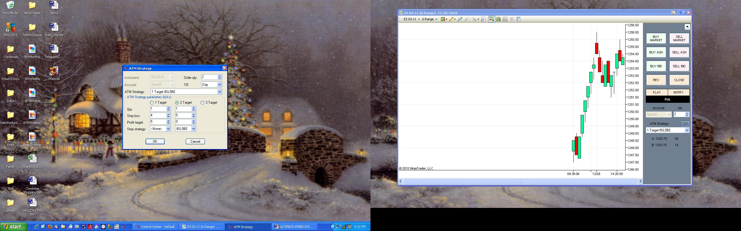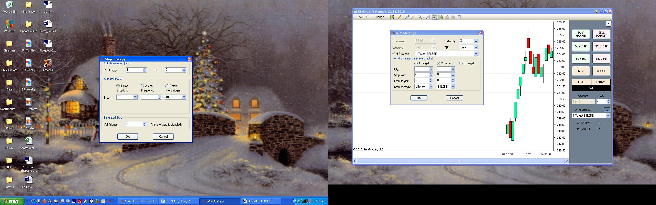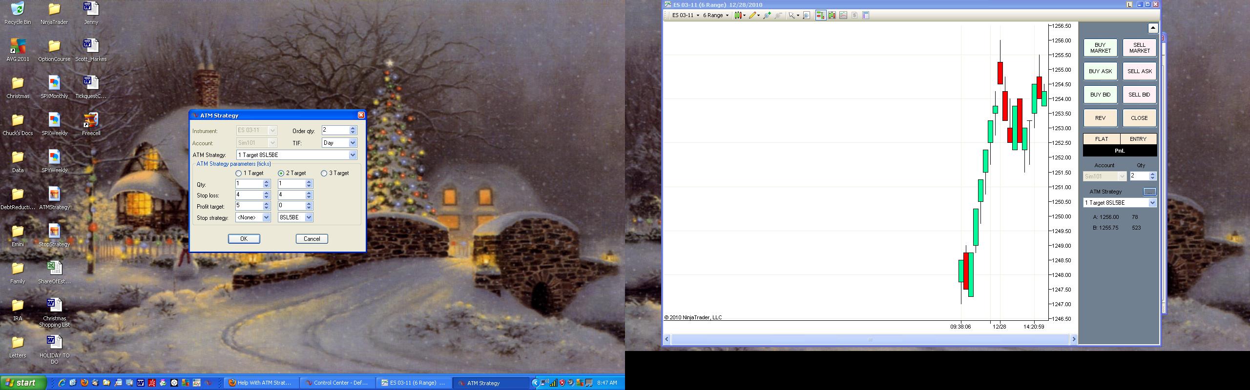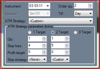 Hello Ryan. I blew it when I set up the strategy. I should have specified 4 ticks for the profit target for the 1st contract and 5 ticks for the stop loss. I'm assuming that my stop strategy for the 2nd contract would have worked if I would have done the ATM strategy correctly. Please confirm.