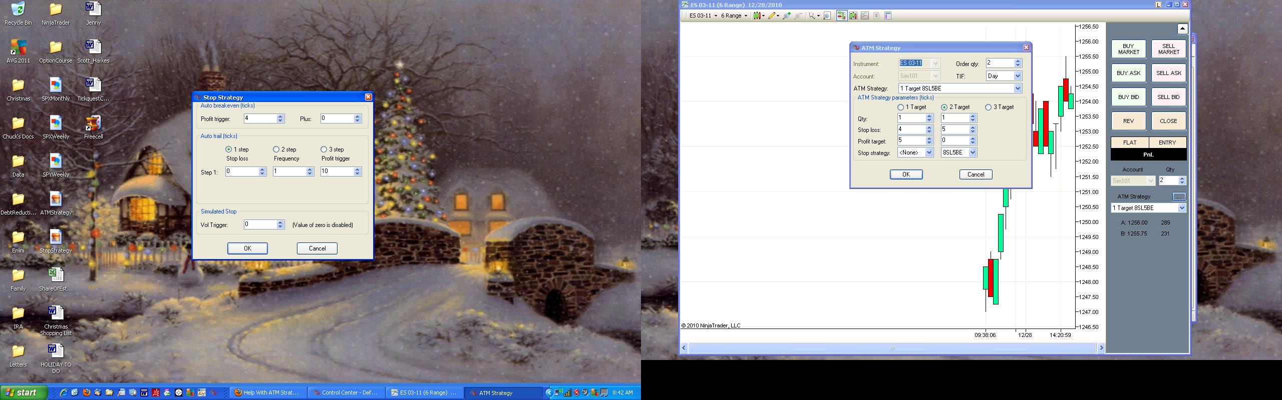 Hello Ryan. I'm not clear. Would you mind posting a screen shot of the correct ATM and Stop strategy so I can better understand? Thanks a bunch.