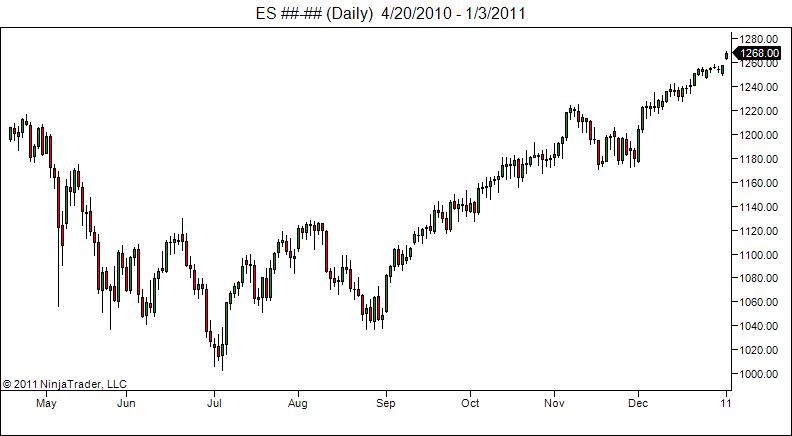 I checked out the NT 7 Help Guide and I think I went a step in the right direction by going to Tools-->Options-->Data and changing the Merge policy to MergeNonBackAdjusted. This has somewhat fixed things as ES low from 7/6/10 is now accurate when I am viewing the 03-11 contract. However as I'm sure your aware we are coming into levels that haven't been tested since the middle of '08. The data on my 03-11 chart seems to become spotty around December '09 and the data seems to cut off on April '09 completely.