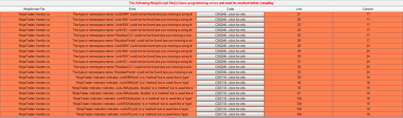 When i go to Tools -> Edit NinjaScript and click on any indicator and then compile it, this is the error message i get. Pls see attached file - error2.jpg