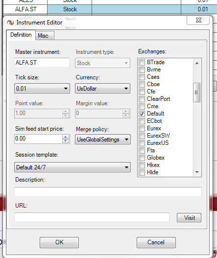 Next I tried to upload the data through the "Import Historical Data" using the Metastock format. I get one file named Masterfile, which I can import. In log I get the following error message "Unable to import data for Metastock symbol ´SAS.CO': Instrument not supported by repository.