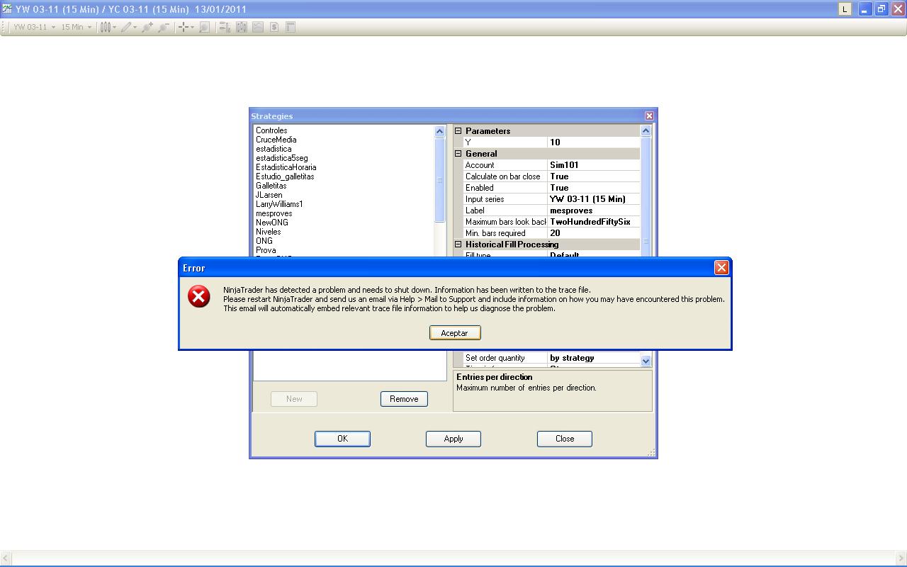 I was testing an strategy with two instruments and it always crashed when I used it on a chart while connected and also with history data.