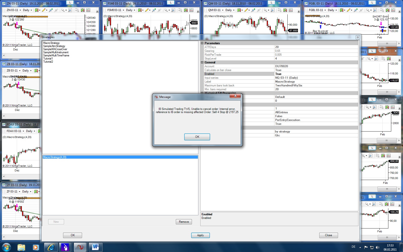 The consequence is that the positionsize between my strategy and my account does not match anymore. Since I am using SyncAccount = True; immidiately submit orders my Account gets always updated with the new orders produced by the strategy.