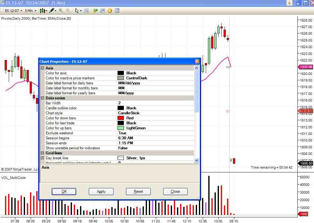 There is one custom indicator in the template (both default & saved). VOL_MultiColor - KBJ helped me get it yesterday. I hope that is not the problem, I cannot use NT charting without multicolor Volume.