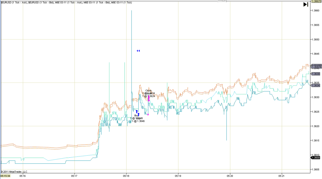 and I have been able to load 4 data series on the same chart (EUR/USD bid & ask, M6E bid & ask) (seen below)