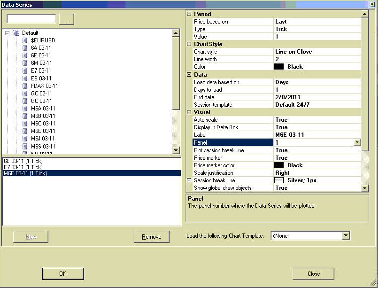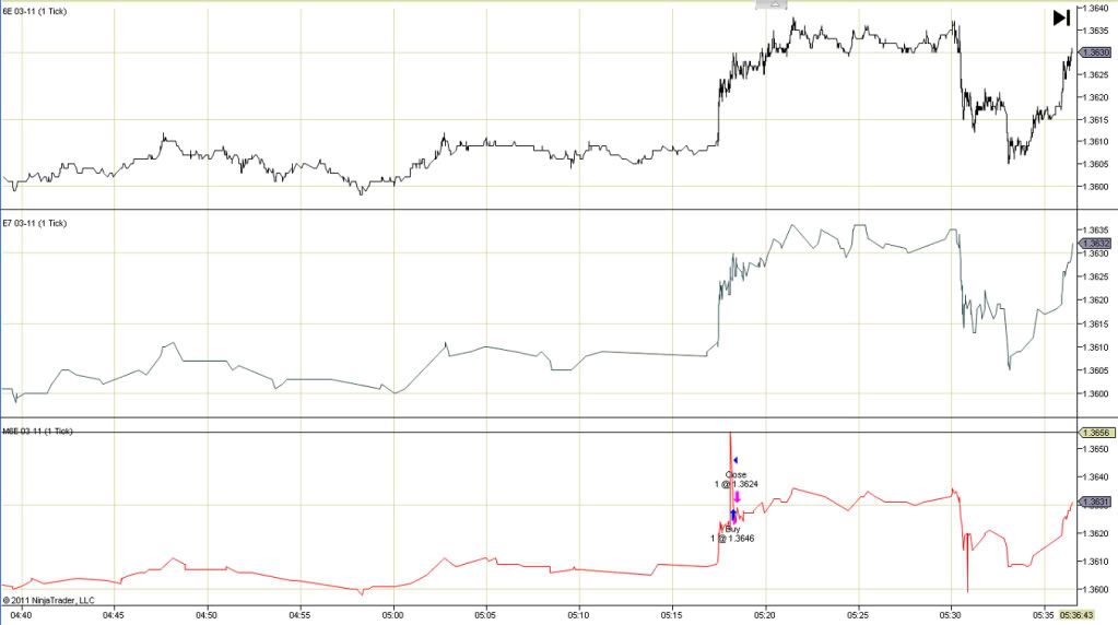 but I am not able to load 6E, E7, & M6E in the same pane for 2/8/2011 with line on close for the time frame indicated in these charts.