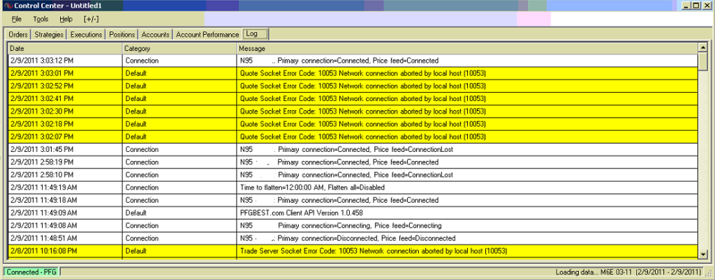 Before connecting, I'd like you to remove the 6E series from the chart and load any other instrument in it's place. Next, connect to PFG.