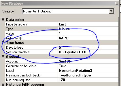 Session Template is only available to select if you used minute bars if use use daily bars that selection goes away, but I do have this code in my Init method: