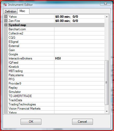 My broker is interactivebrokers. I am able to get data for HSI future in ninjatrader. But I am not able to get the data for HSI index. How to set up the symbol map?