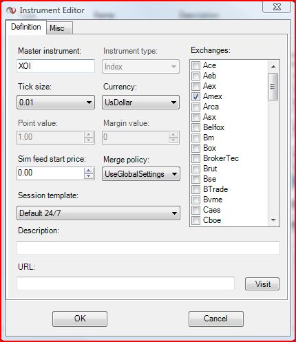 This is actually two problems. NT7 is unaware of some of the Philadelphia (and some other, widely used) indices, like ^XOI, ^OSX, ^HGX, ^HUI, ^NGX ... etc. Entering any one of these on a chart results in an error message: "Invalid instrument name".